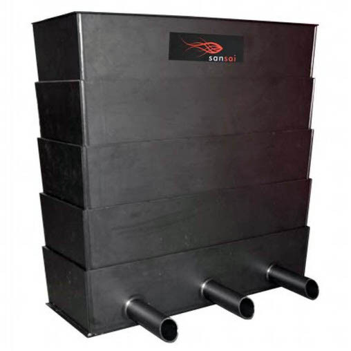 Зрошувані біологічні фільтри для ставка (ПЗВ) виробника Sansai виготовлені з поліетилену чорного кольору, що набагато краще поєднує його з довкіллям біля ставка.